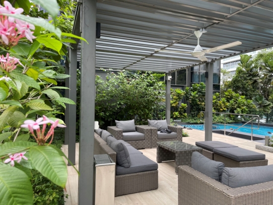 Great World駅徒歩4分。駅直結モールには明治屋はじめ日系店舗が充実。
